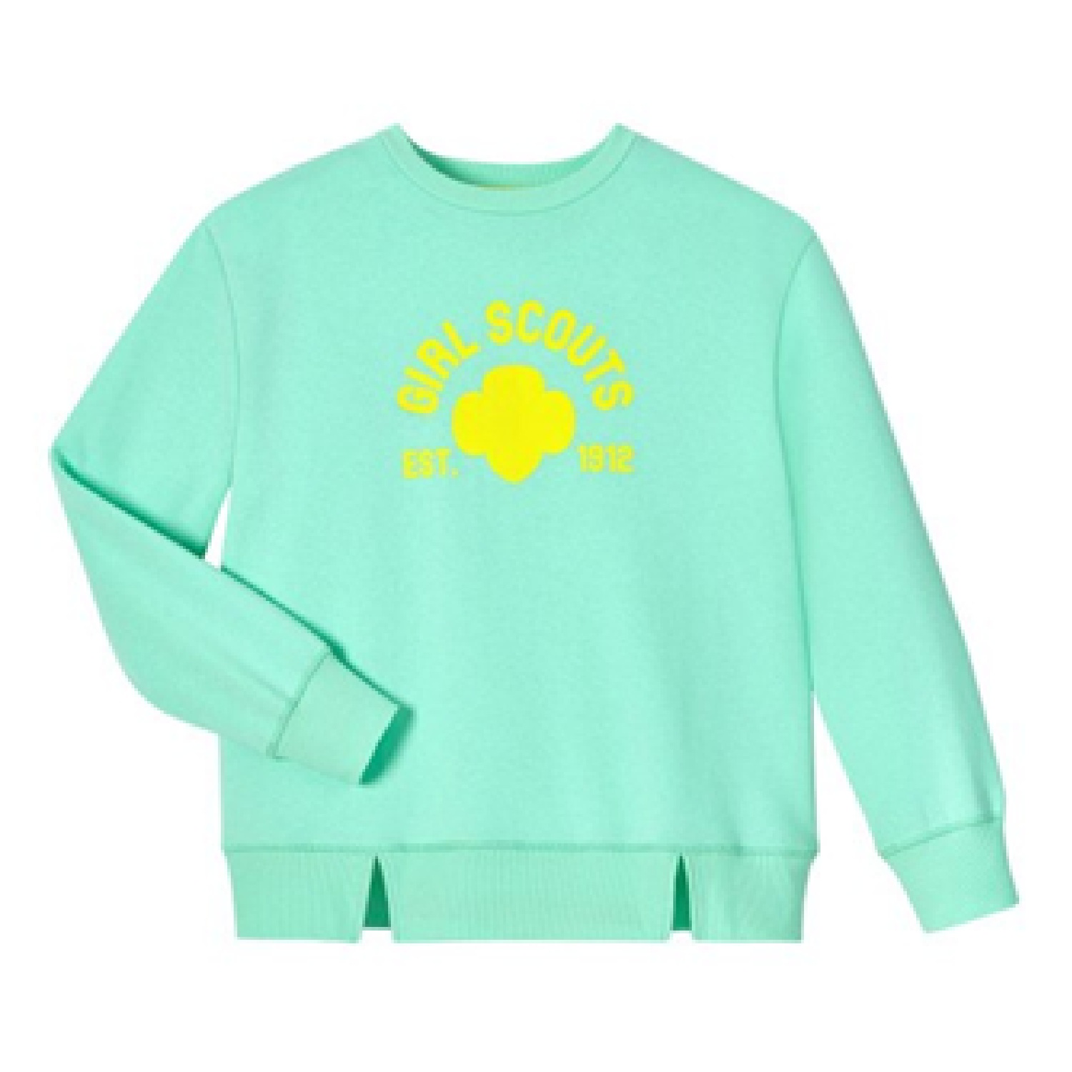 Welcome springtime with this mint green sweatshirt featuring a trend-right neon yellow graphic. Also available in girls' sizes.