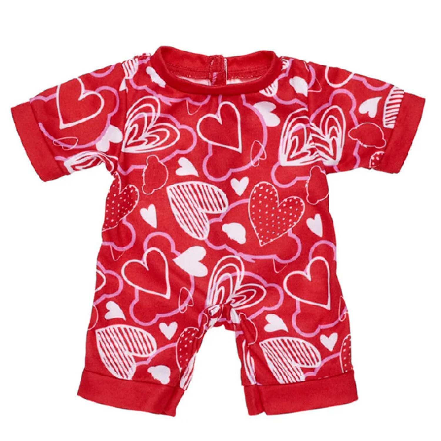 Your bear will snuggle up to the sweetest of dreams this Valentine's Day when cuddled in this red heart print PJ sleeper.
