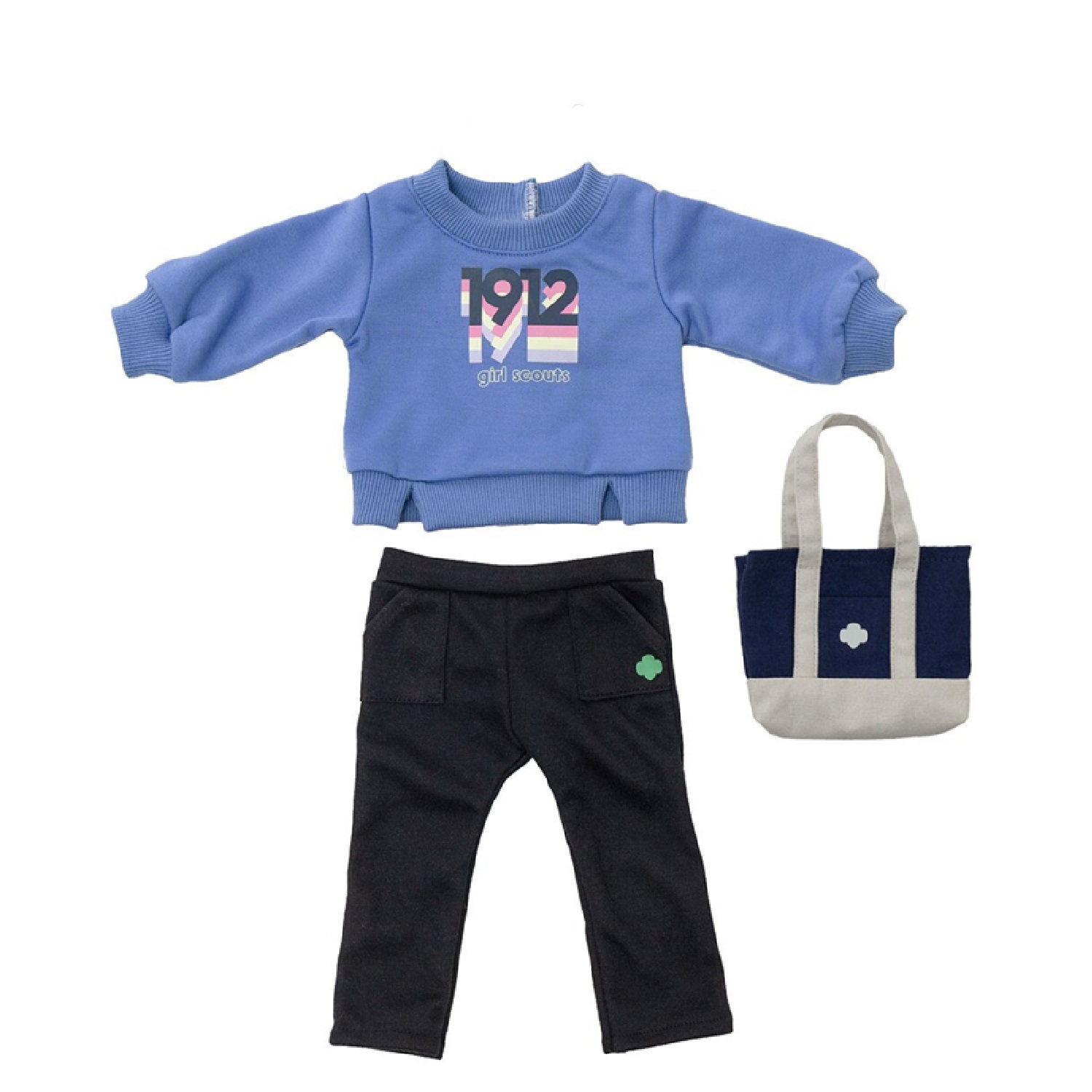 Your doll can twin in style with our sweatshirt and legging set, designed to match back to the girl's look! Featuring trendy graphics, vibrant colors, and comfy fabrics, this outfit brings the spirit of coordinated fashion to playtime. Imported. Doll not included.
