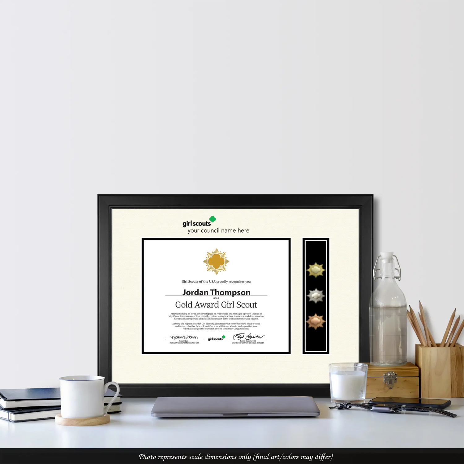 To note, the Girl Scouts certificate and pins are NOT included with the frame.