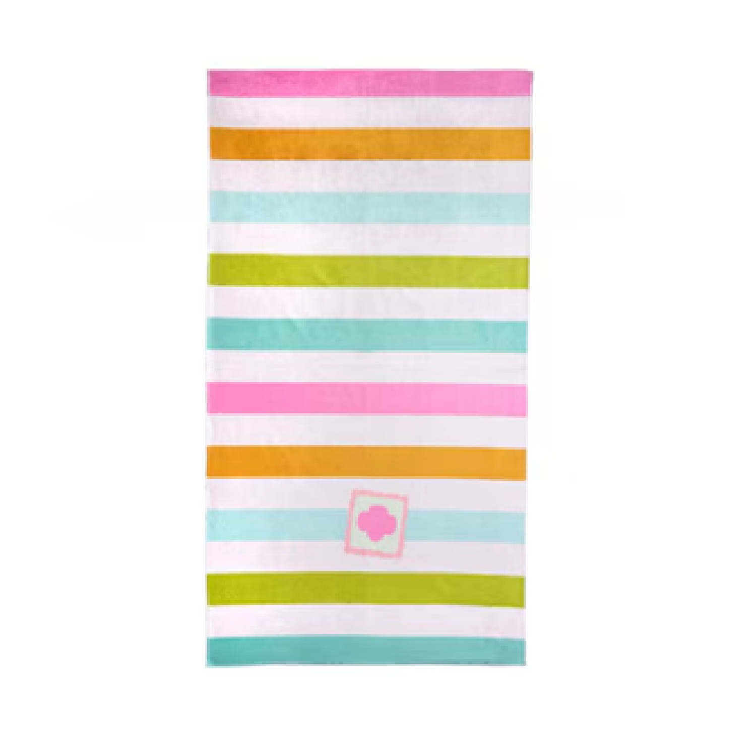Soak up every sunny adventure, Girl Scout–style! The Wild Wanderer Beach Towel is made for beach days, poolside fun, and drying off after every splash. Featuring a “Wild Wanderer” stripe pattern designed by Alicia Bruce, with a solid pink trefoil on the front and a solid grey back. A soft printed polyester top combined with an absorbent cotton bottom and hanging hook makes this towel fun and functional. 55” L x 29.5” W. Imported.