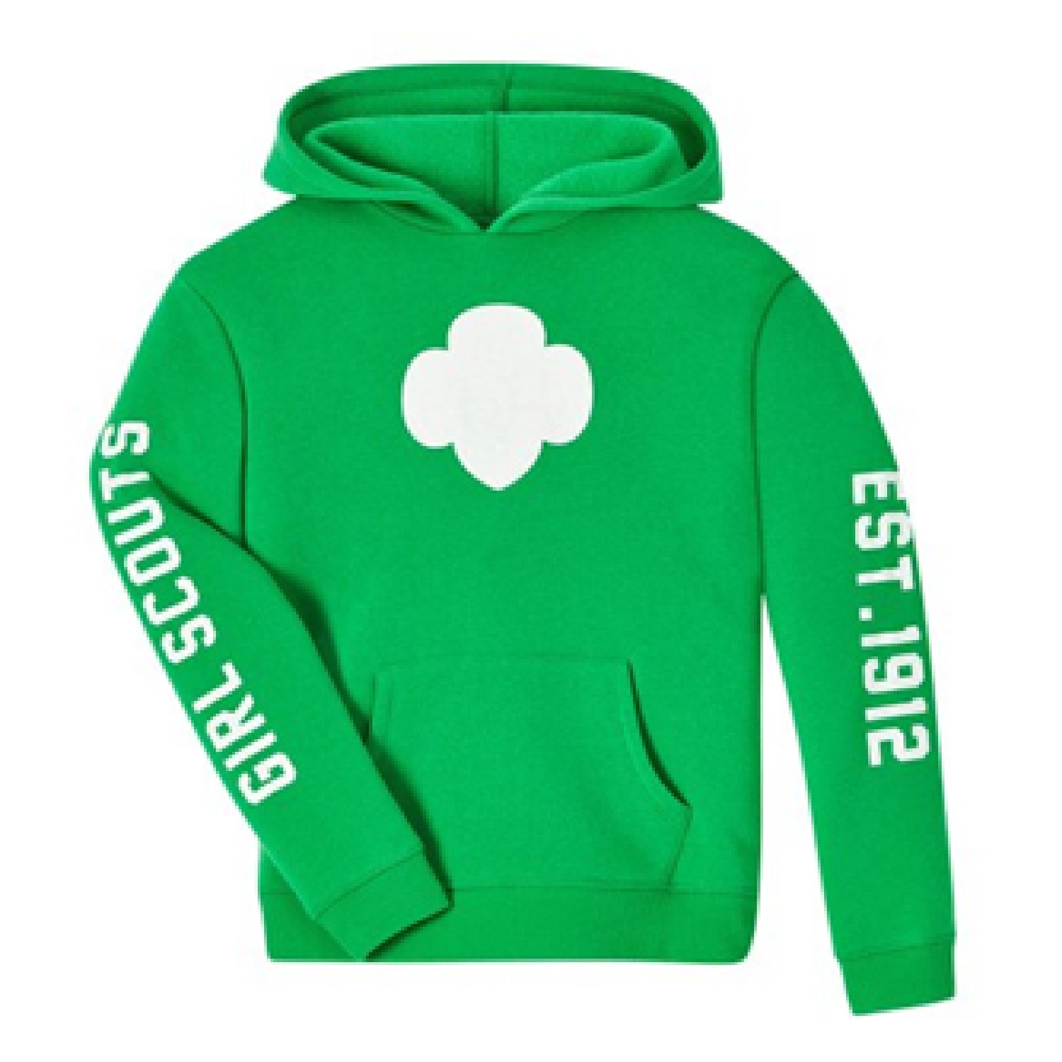 Our bestselling hoodie sweatshirt is back, this time in classic Girl Scout green! Show your Girl Scout pride from every angle. Also available in adult sizes.
